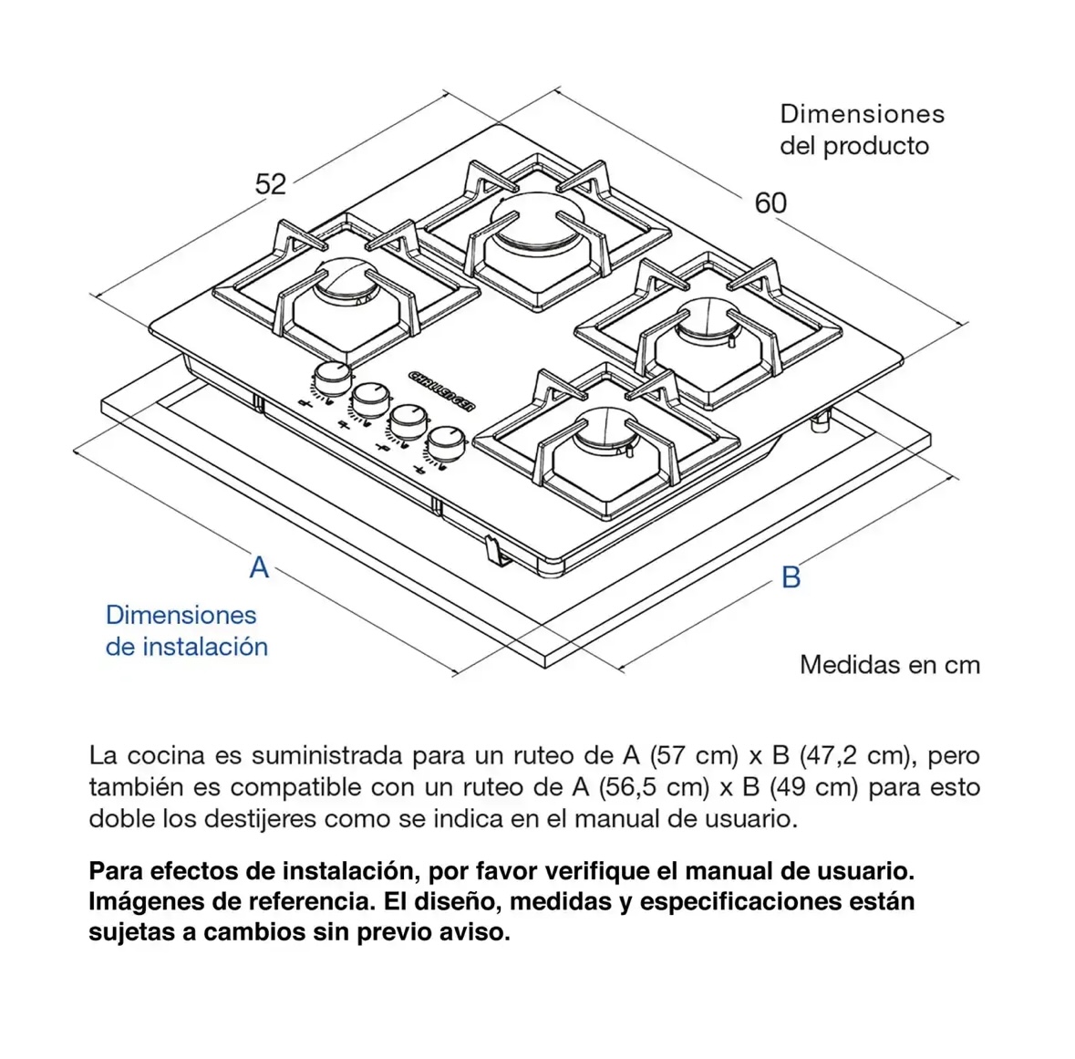 La compré porque cocino bastante y necesitaba algo resistente. Las parrillas de hierro fundido aguantan ollas pesadas sin problema y los quemadores tienen muy buena llama. La instalación fue sencilla y todo funciona como debe. Muy recomendada.