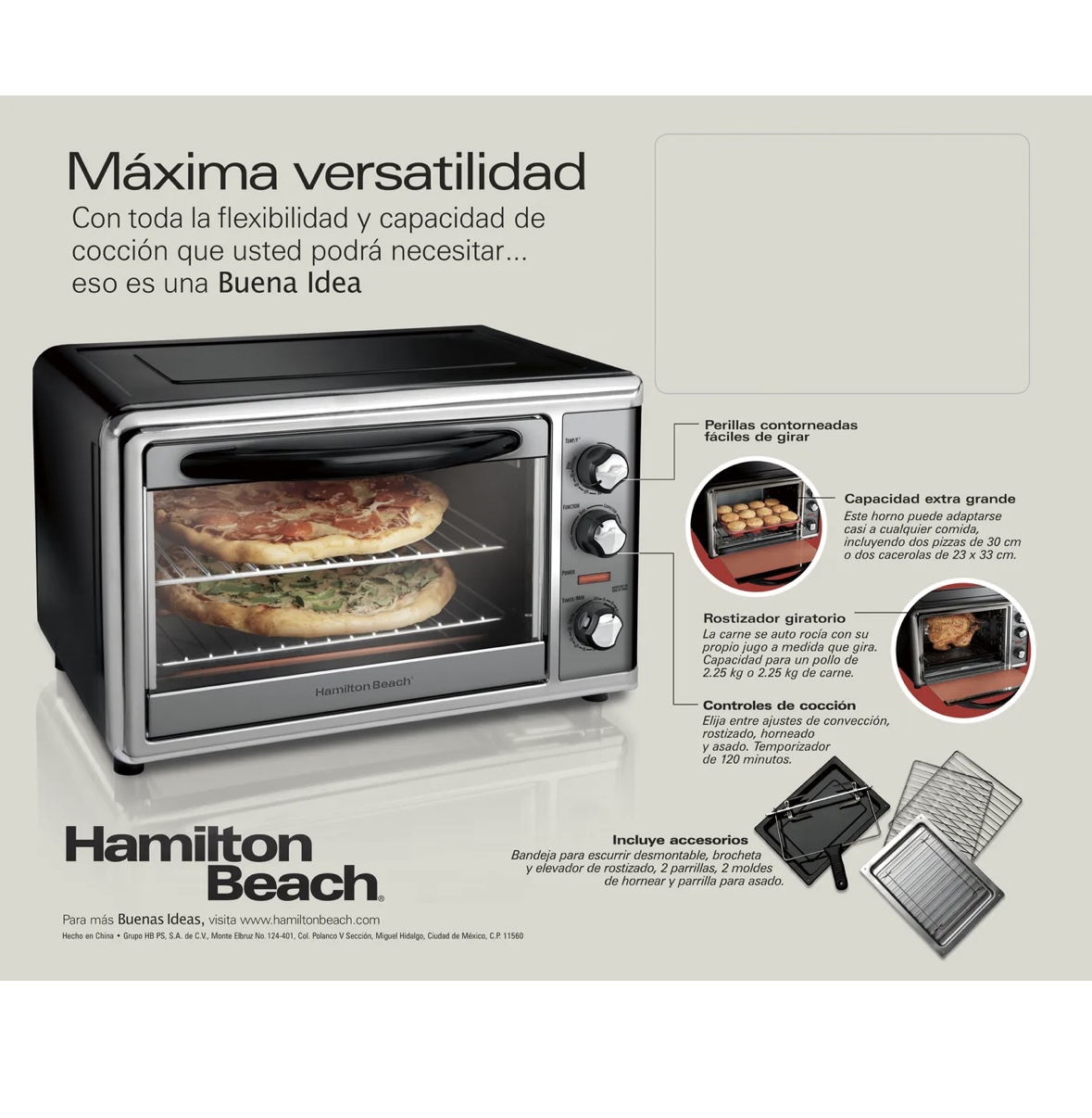 La verdad, necesitaba un horno más versátil para mi cocina. Este HAMILTON BEACH tiene todo lo que buscaba: convección, asador, y la capacidad es impresionante. Los controles son fáciles de usar y me encanta el apagado automático, no tengo que estar pendiente todo el tiempo.