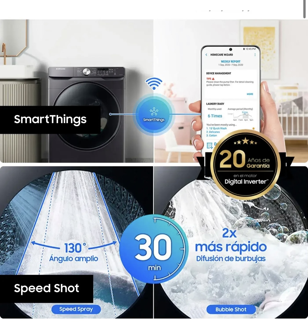 Lavadora/Secadora SAMSUNG Carga Frontal 18 Kilos WD18T6000GV/CO Negro