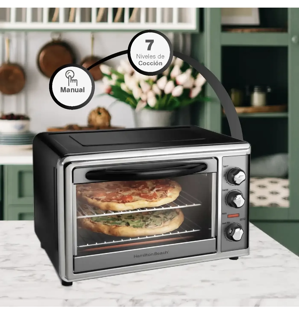 La verdad, necesitaba un horno más versátil para mi cocina. Este HAMILTON BEACH tiene todo lo que buscaba: convección, asador, y la capacidad es impresionante. Los controles son fáciles de usar y me encanta el apagado automático, no tengo que estar pendiente todo el tiempo.