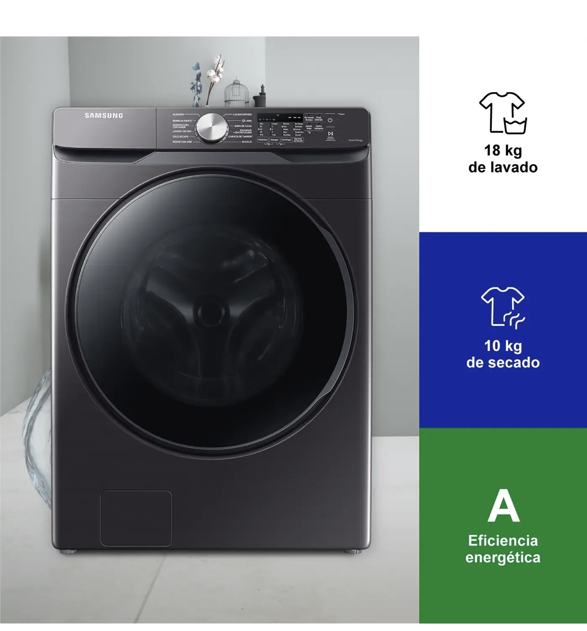 Lavadora/Secadora SAMSUNG Carga Frontal 18 Kilos WD18T6000GV/CO Negro